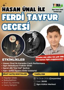 “14 Ocak 2026 Çarşamba Saat 20.00 Ilgın Kültür Merkezi Bilet 200TL“Unutmayalım; sizin alacağınız “Bir bilet, Yiğit için bir ömürlük umut olabilir…“Lütfen destek olalım, paylaşalım, çoğalalım…